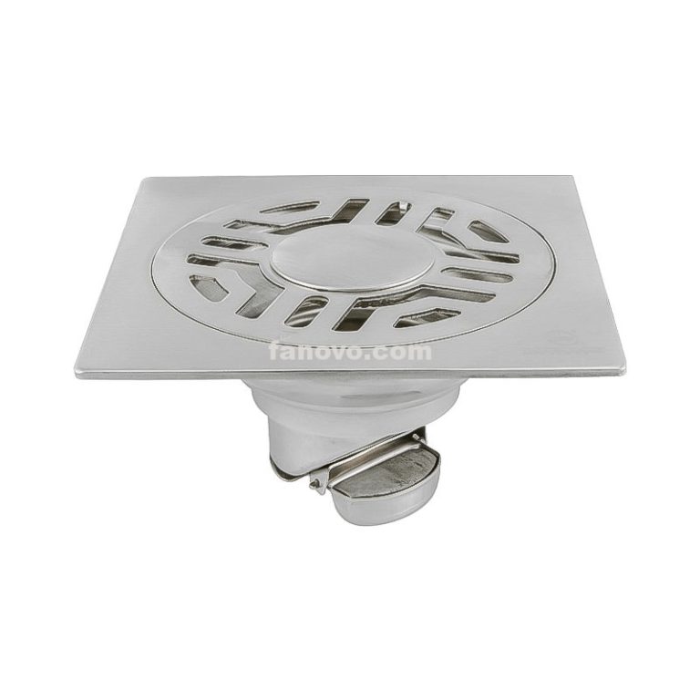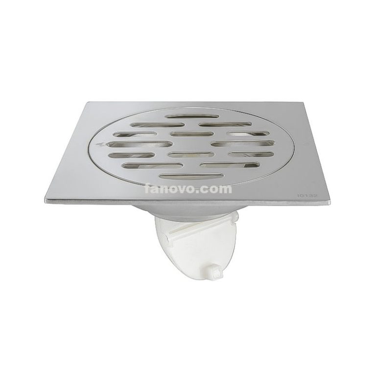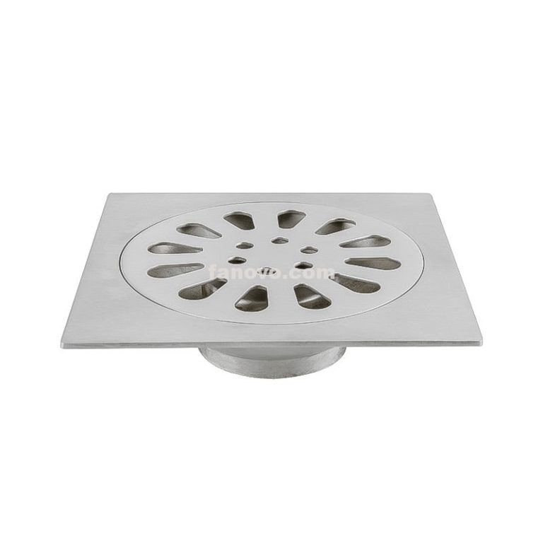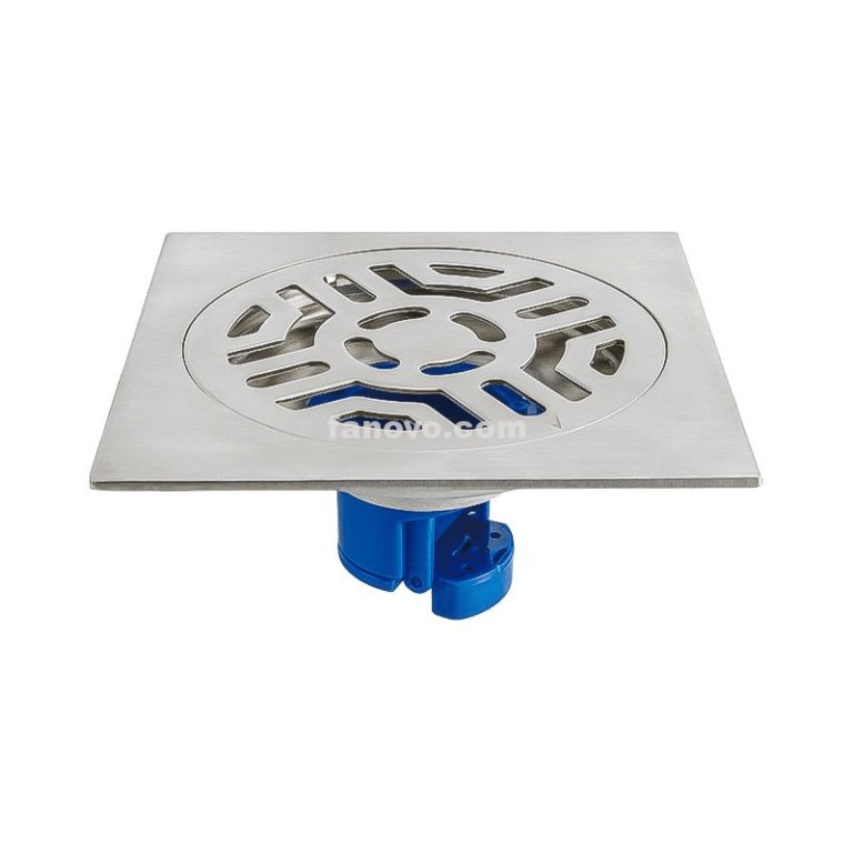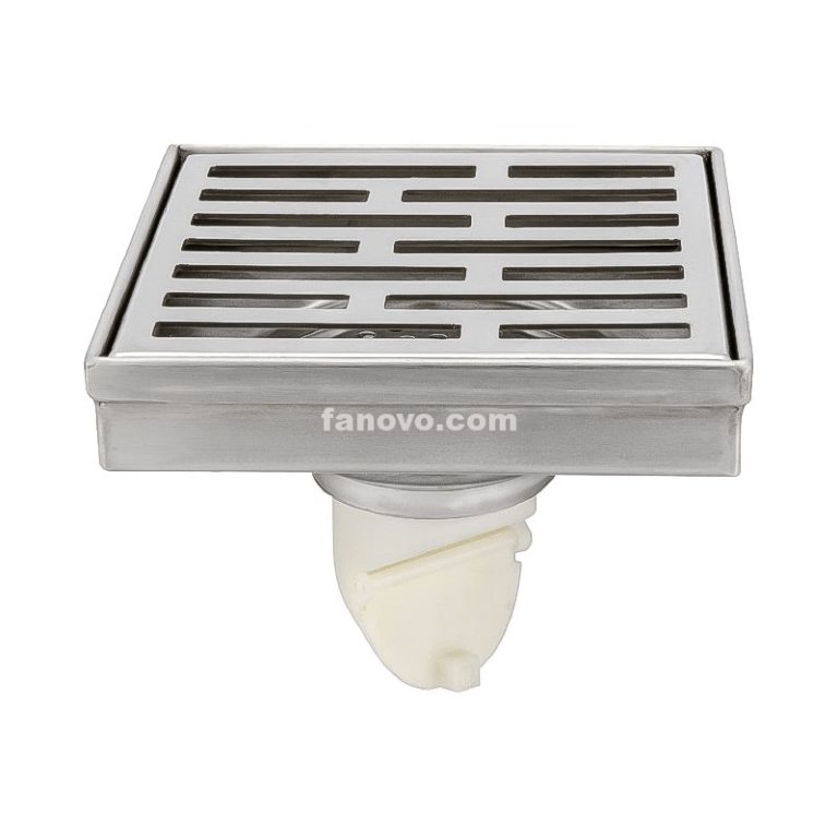 FSD005 Square Shower Drain 4 inch Stainless Steel 304 Grate and ABS Drain Body Brick Pattern Prate with Brushed Nickel Finish Hair Trap/Strainer Lifting Hook and PVC Drain Base